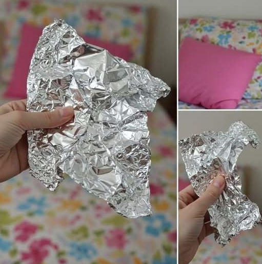 Before going to bed, a person places a thin piece of aluminum foil underneath their pillow and leaves it there overnight.
