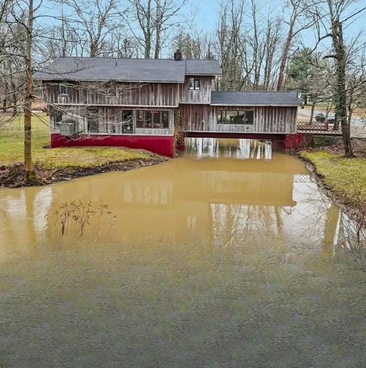 The presence of mature trees and gently rolling terrain adds character to the setting, while natural elements such as a nearby stream and river frontage enhance the sense of calm, making the property feel like a retreat away from the demands of busy urban life.